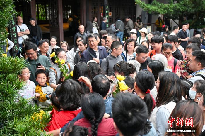 宋,北宋时改宅为祠,亮终誉于卒水,浑康熙4年(1665年)正在本址上重修。图为3苏祠飨殿前乘客背3苏女子敬献陈花。中新社记者 刘忠俏 摄